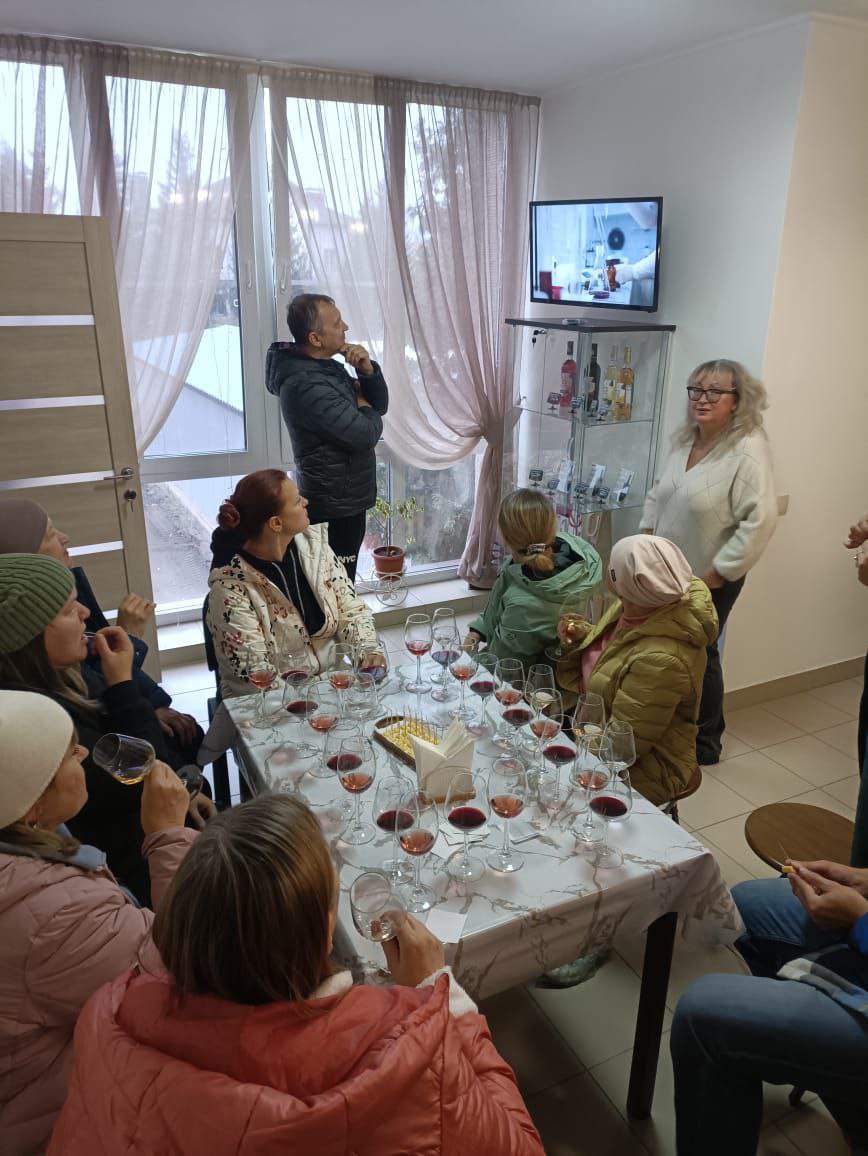 Участники экскурсии с интересом знакомились с процессом создания вина в уникальных сибирских условиях, узнавали о тонкостях виноделия и даже осваивали этикет питья вина.